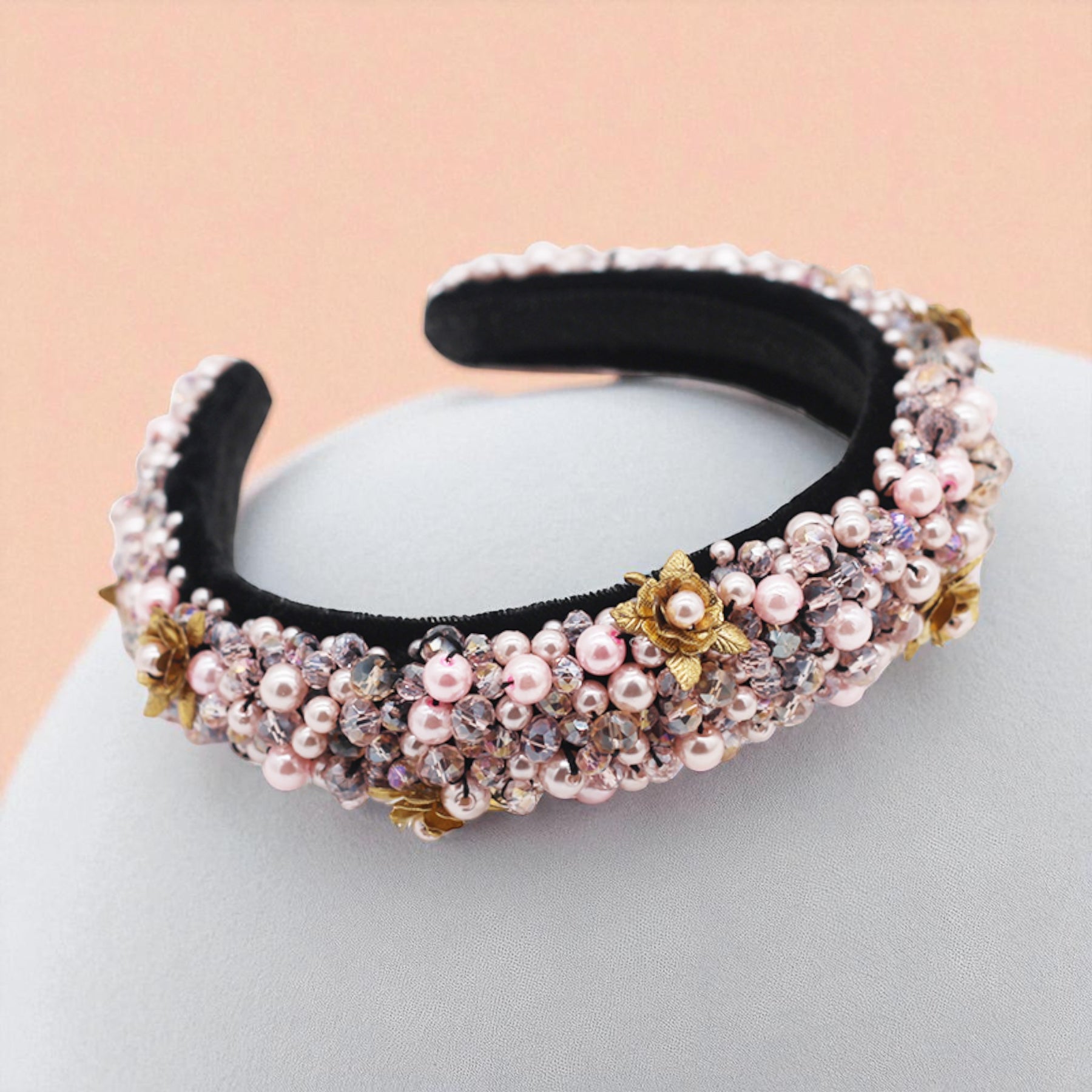 Elegância premium em design barroco com pérolas e cristais. Bandolete luxuosa que combina tradição e modernidade.