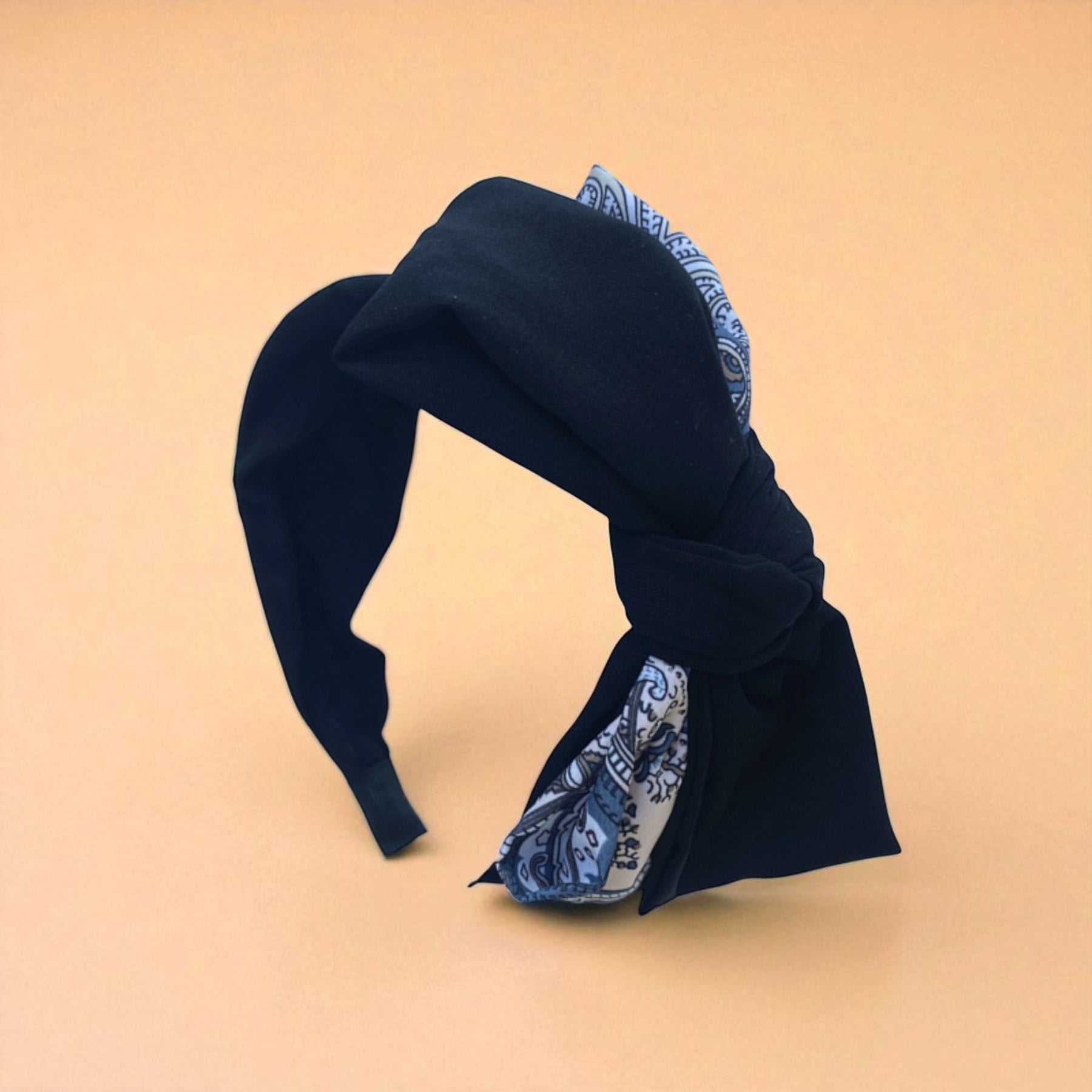 Elegância premium em tecido floral sofisticado com laço romântico. Bandolete que combina tradição e modernidade.