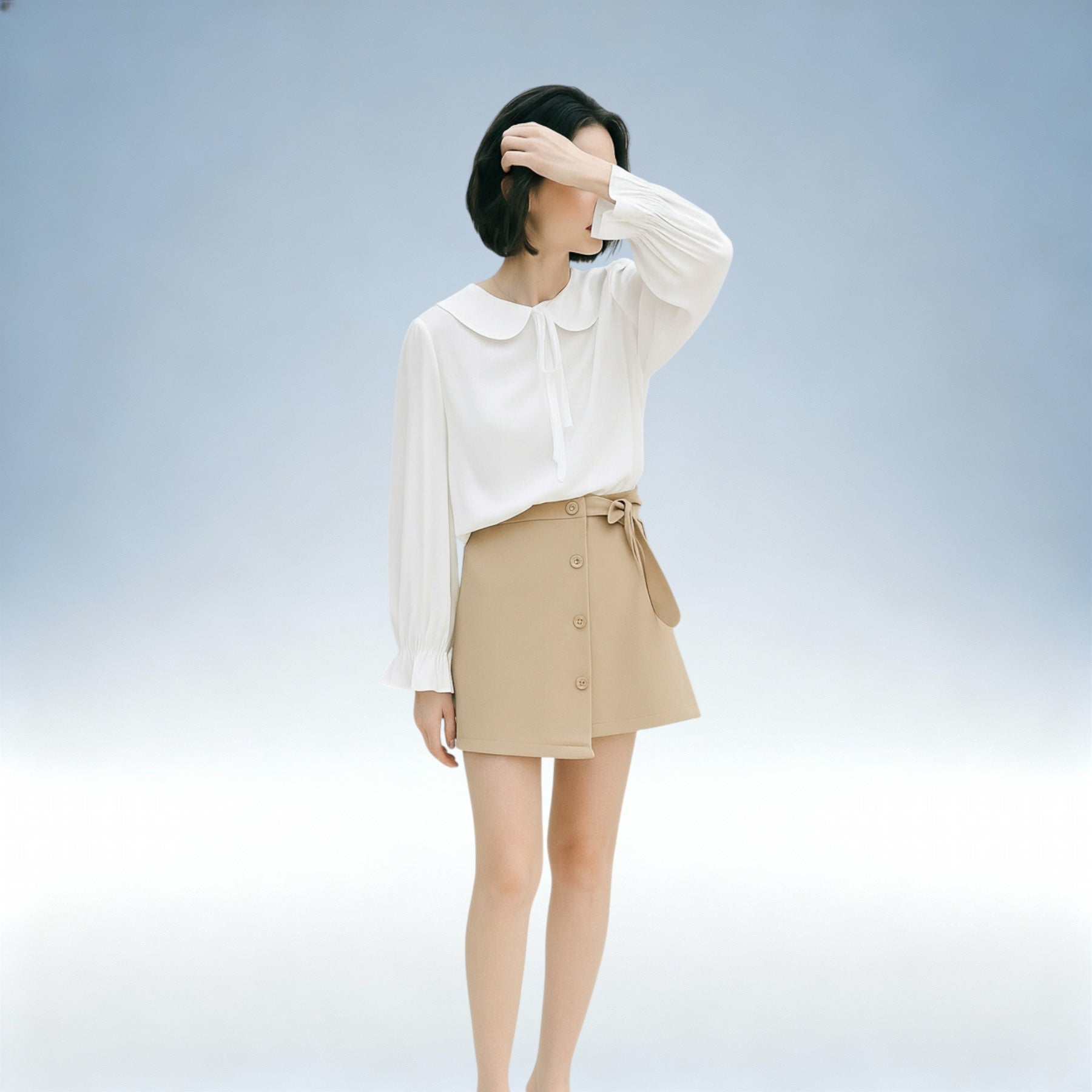 TERESA — Camisa Francesa com Laço na Gola | Elegância Atemporal