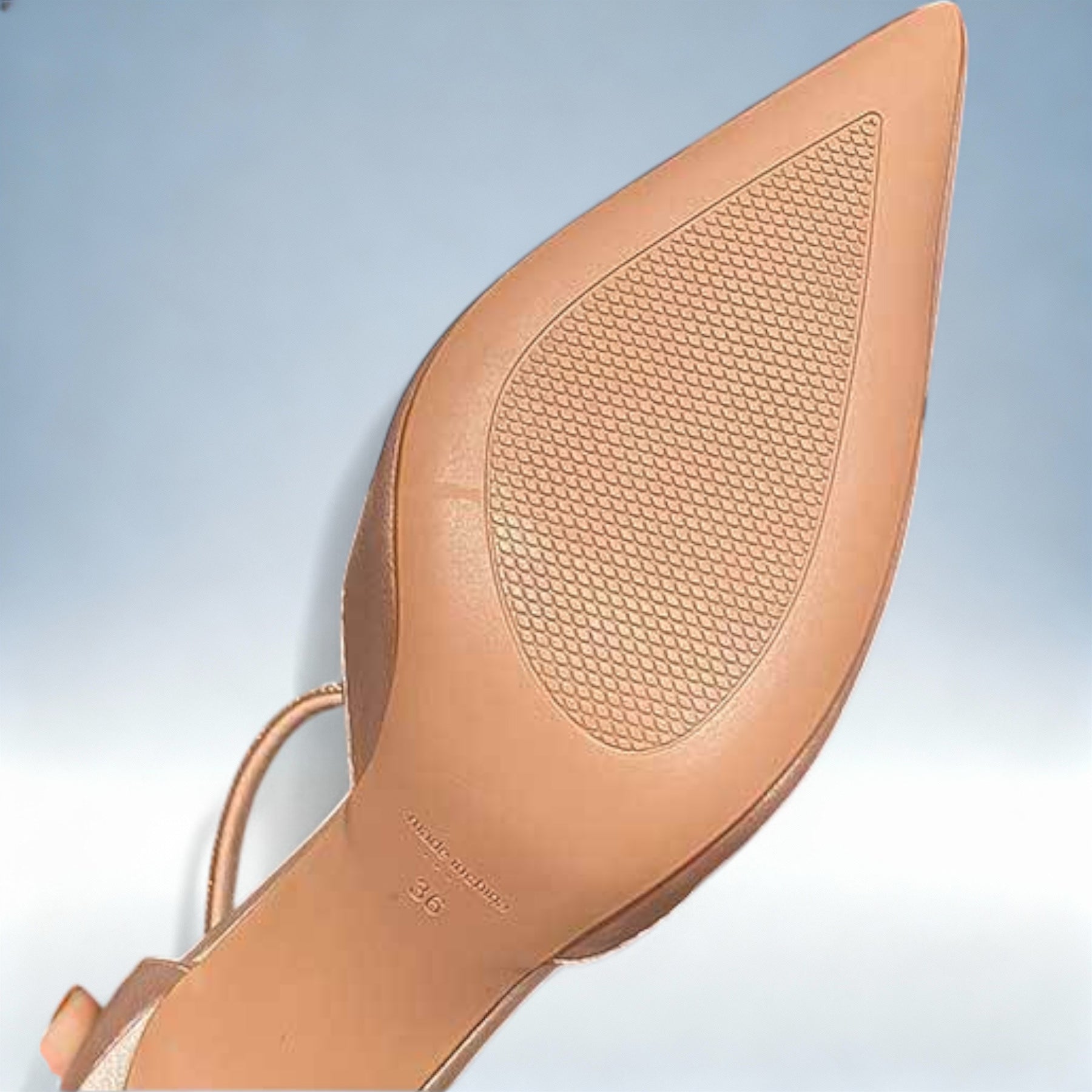 Salto de 8cm que proporciona altura elegante sem comprometer o conforto durante todo o dia.