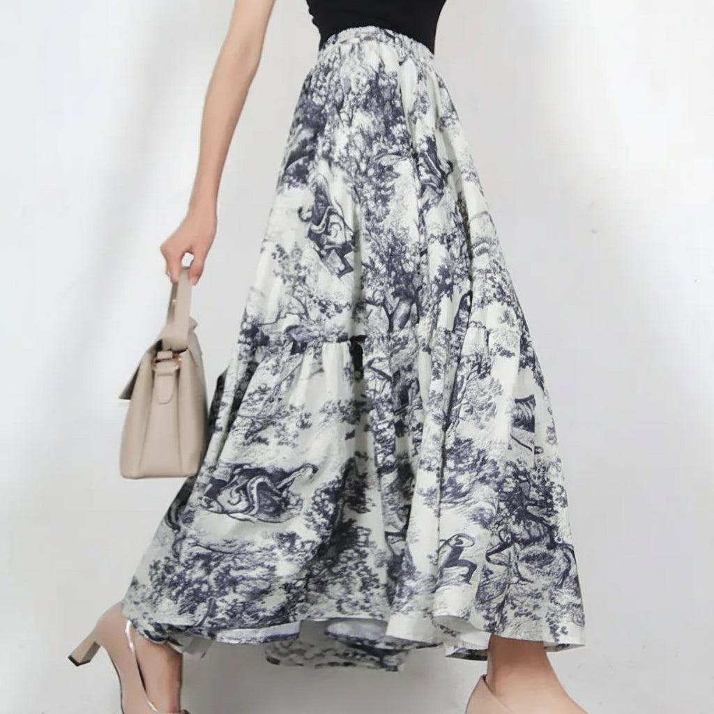 Redescobre a tua feminilidade com esta saia longa de corte impecável. Uma peça essencial que combina conforto e sofisticação, perfeita para a mulher moderna que valoriza versatilidade no seu guarda-roupa.
