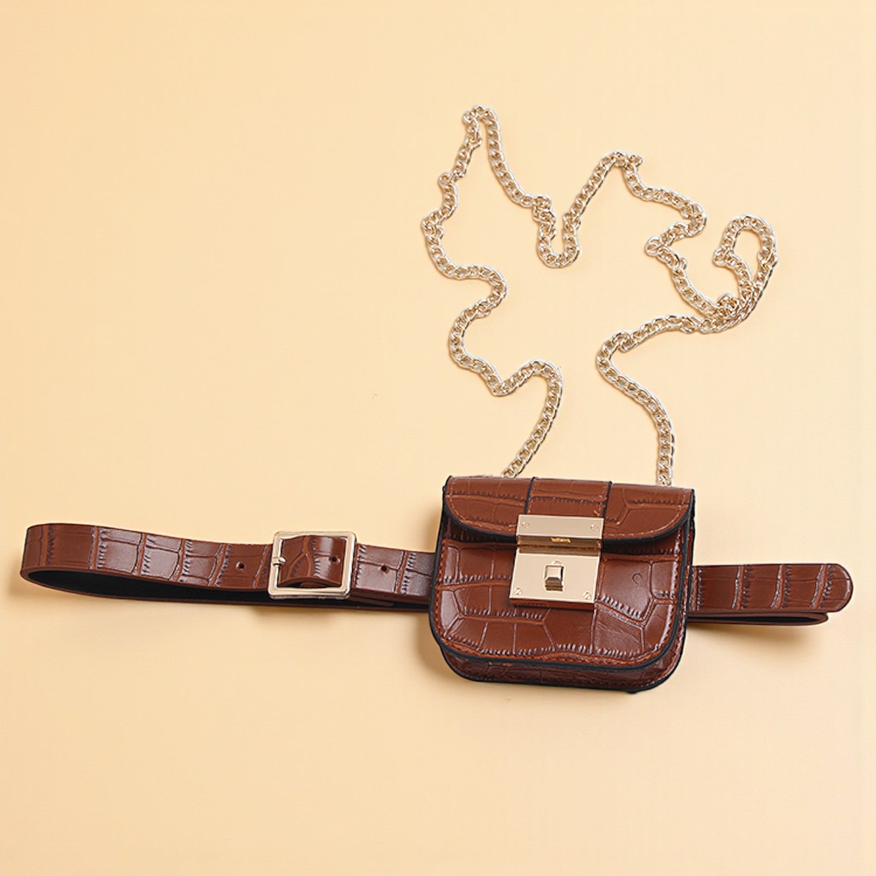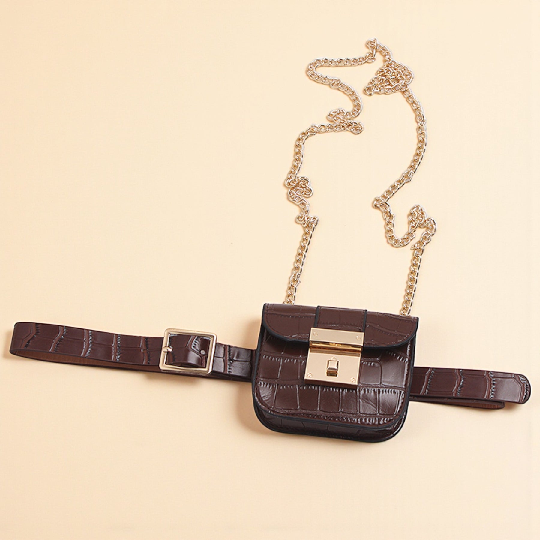 Esta mala incorpora a filosofia croata do design funcional e elegante. O padrão crocodilo não só adiciona textura sofisticada como também proporciona durabilidade, enquanto a corrente removível permite usar como clutch ou crossbody conforme a ocasião.