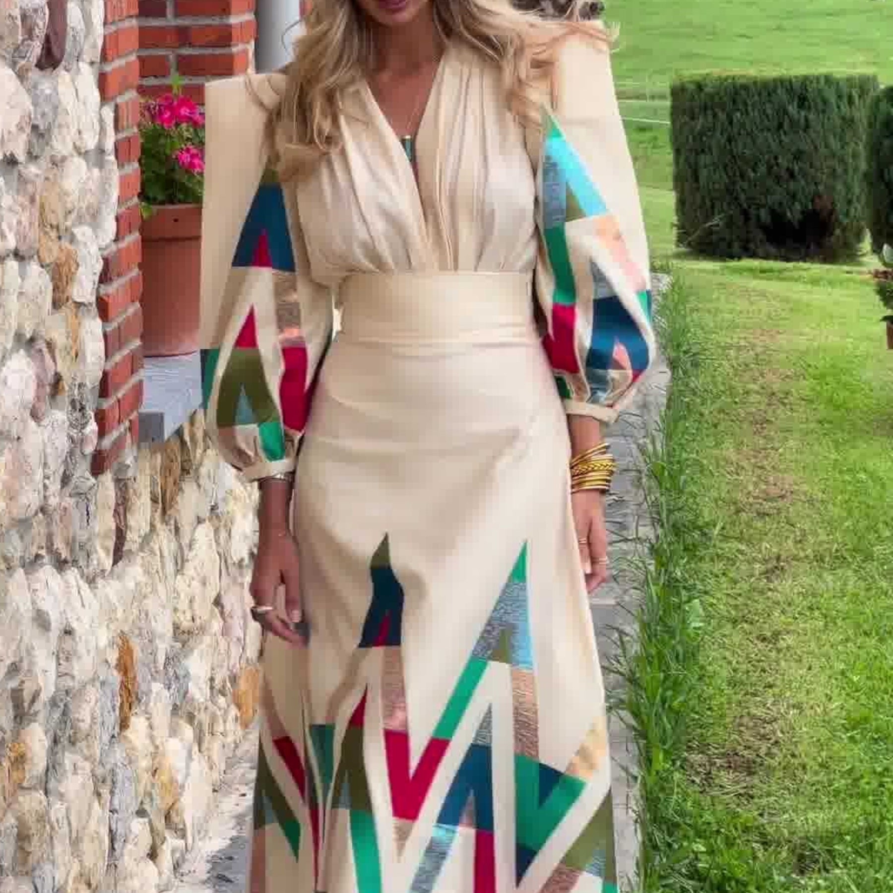 Elegância premium em design outonal estampado. Vestido feminino que combina tradição e modernidade.