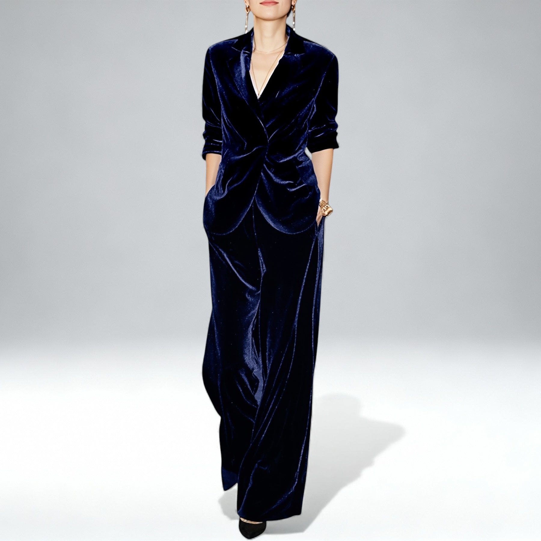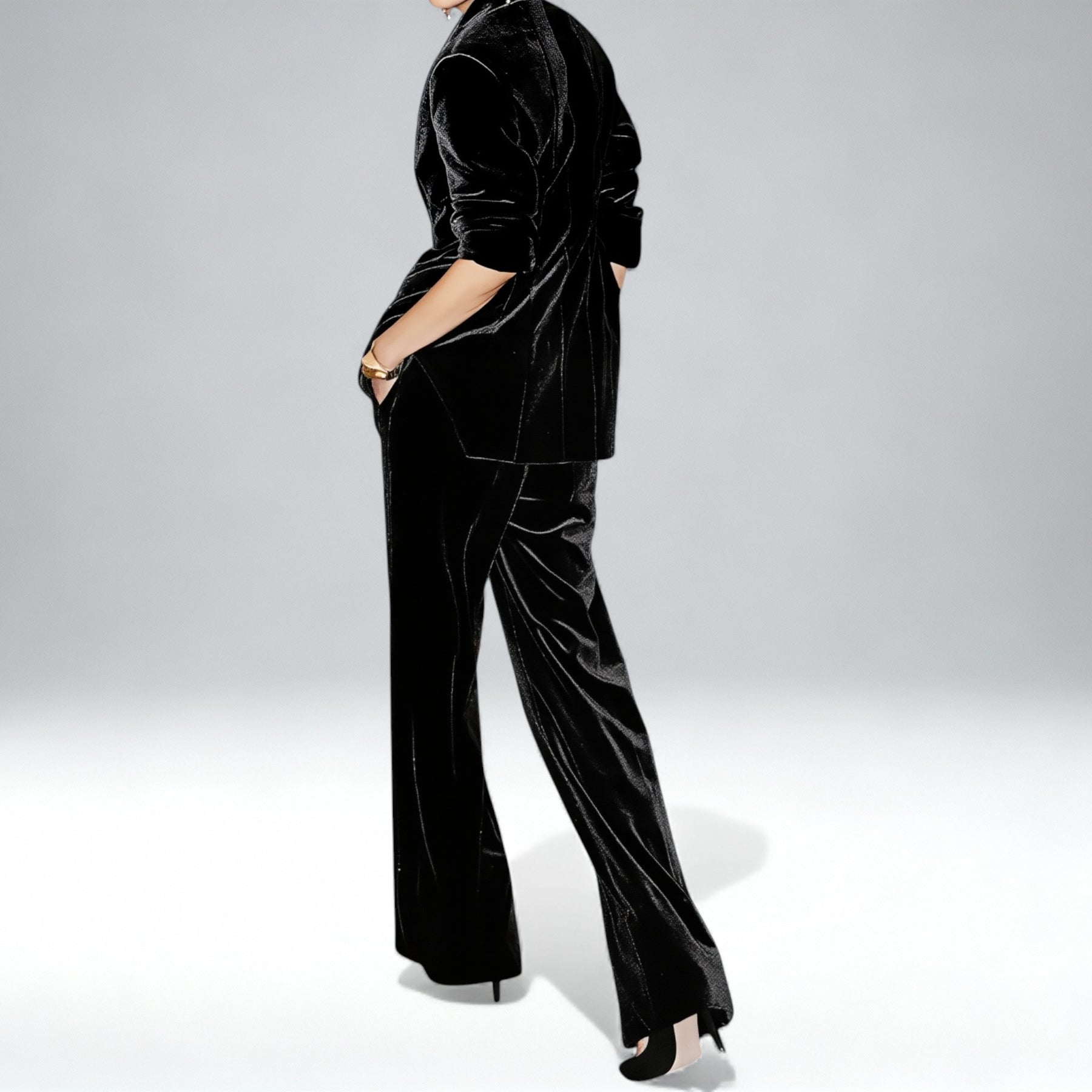 Brilha com elegância no conjunto ELENA — uma peça luxuosa que combina conforto e sofisticação num visual impecável e intemporal, perfeita para reuniões profissionais, ocasiões especiais ou para elevar o teu dia a dia.