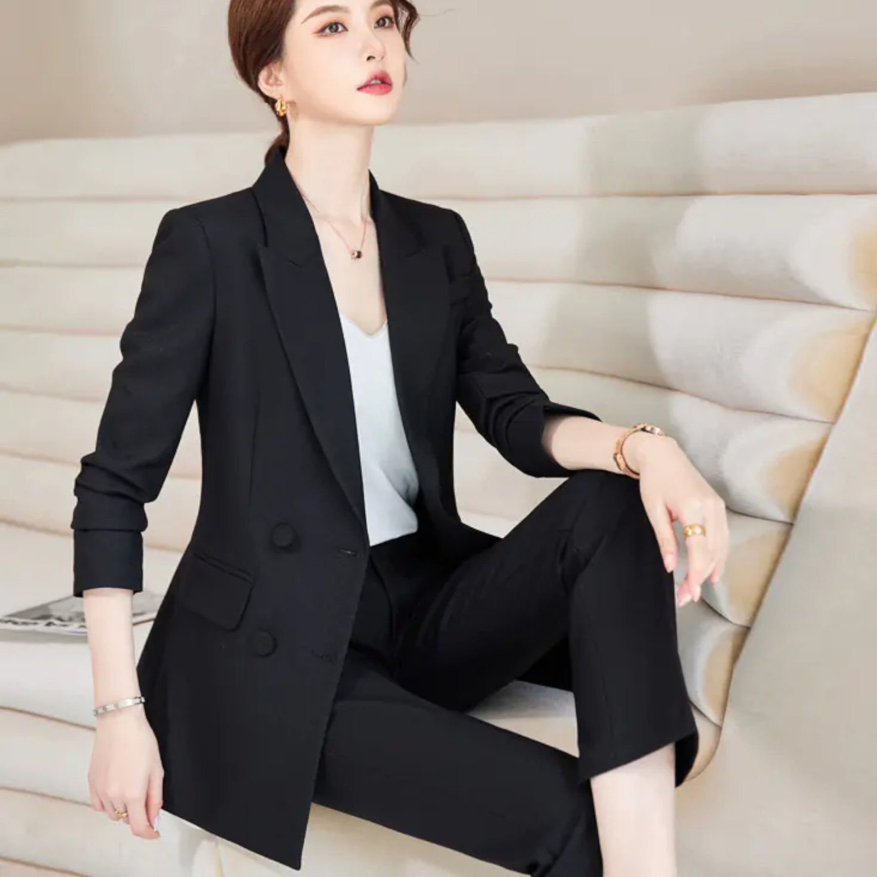 Elegância premium em alfaiataria duplo peito. Fato completo que combina tradição e modernidade.