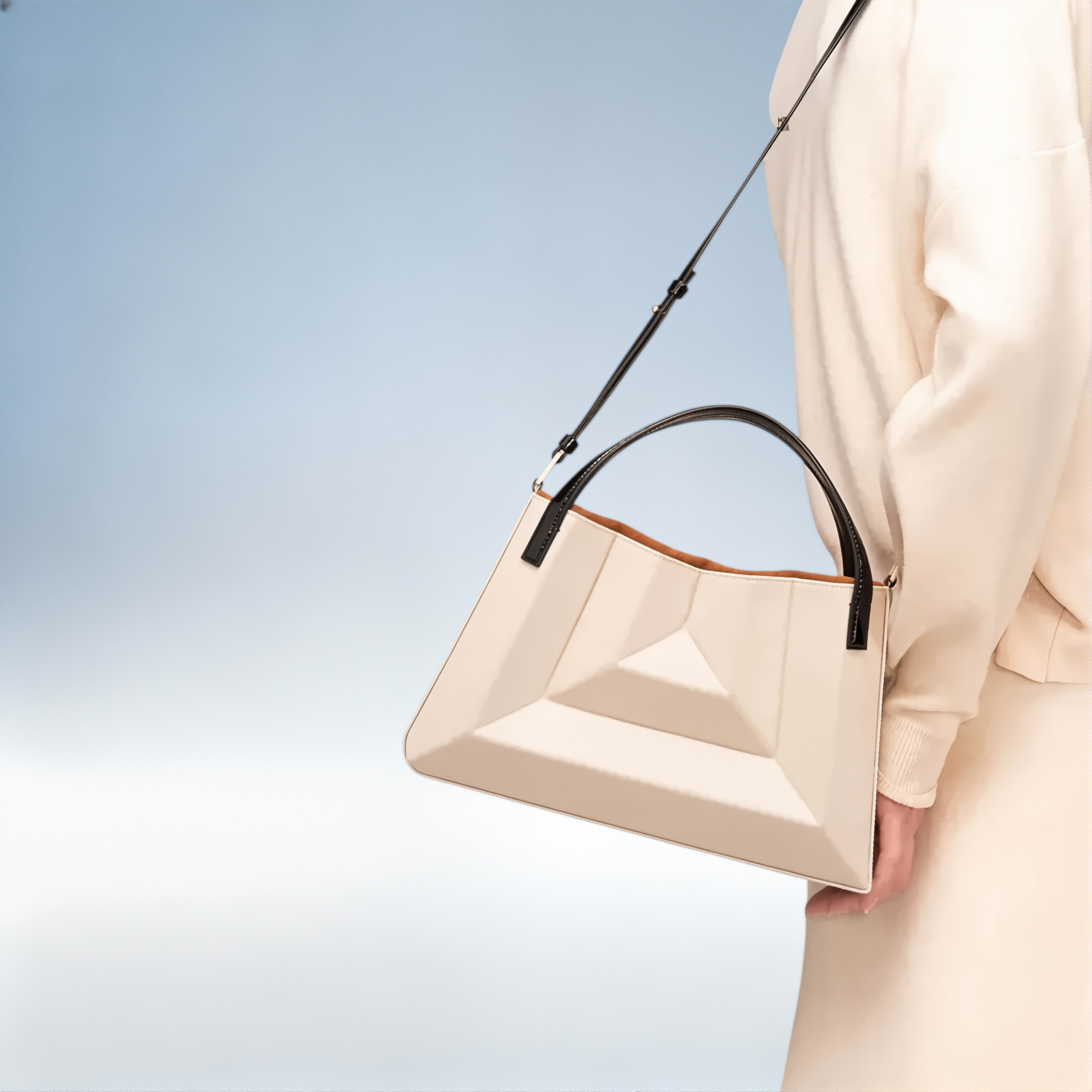 A MILENA é a nova definição de versatilidade — uma mala tote que combina design inteligente e elegância contemporânea. O seu formato dobrável estilo acordeão confere-lhe um charme moderno, perfeito tanto para o dia a dia como para momentos mais especiais.