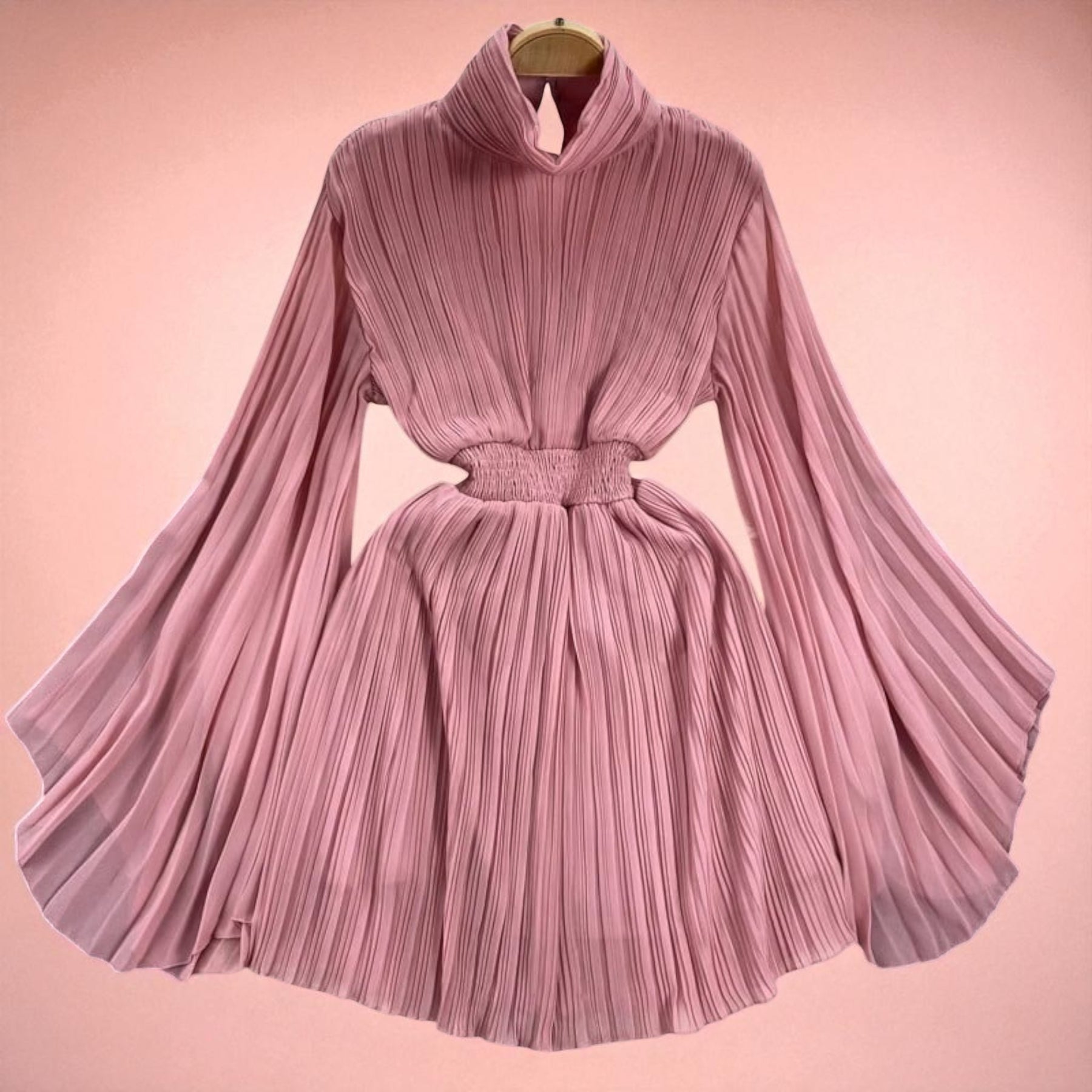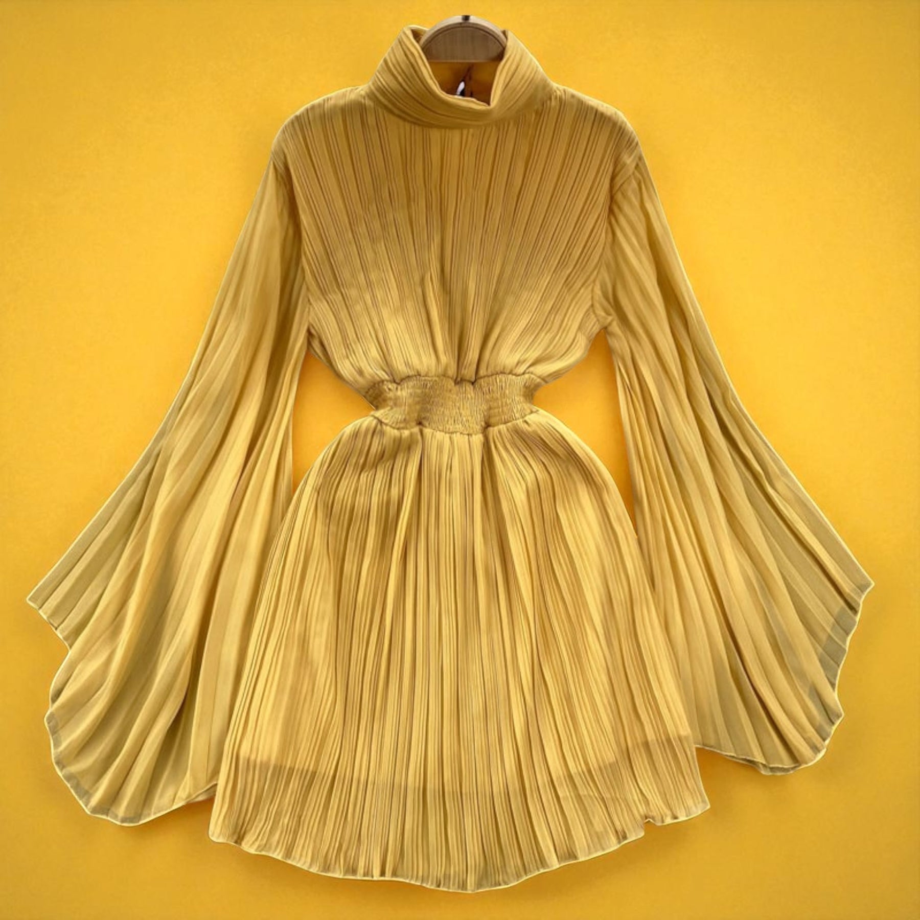 Elegância premium em cada detalhe. Design sofisticado de gola alta com mangas plissadas que combinam tradição e modernidade.